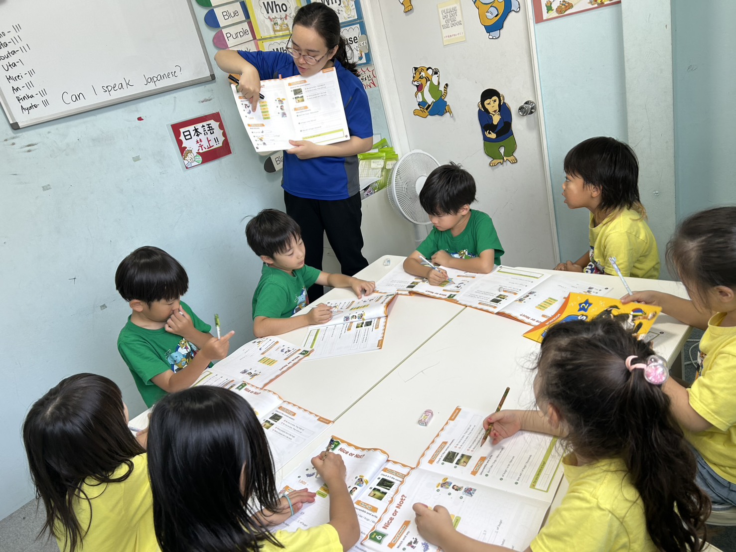 自分達で3文字か4文字の単語を出し合いBINGOを作成して楽しみました。通常レッスンでは行わないゲーム形式で英語の発話を促します。